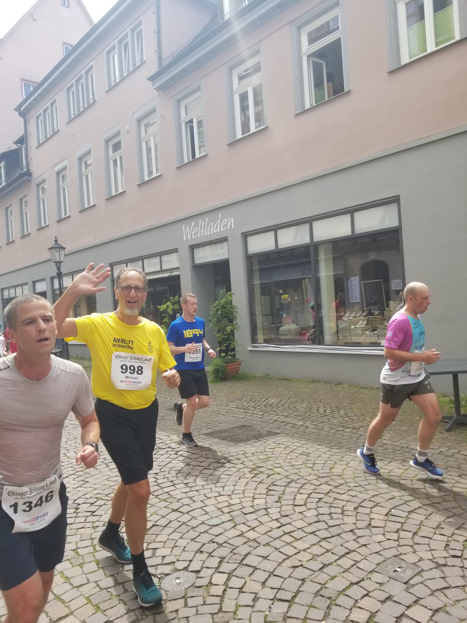 Die Esslinger Amnesty International Gruppe läuft für die Menschenrechte beim Esslinger Zeitungslauf durch die Esslinger Innenstadt